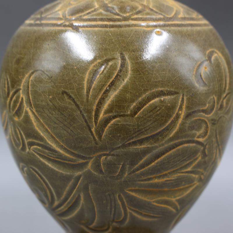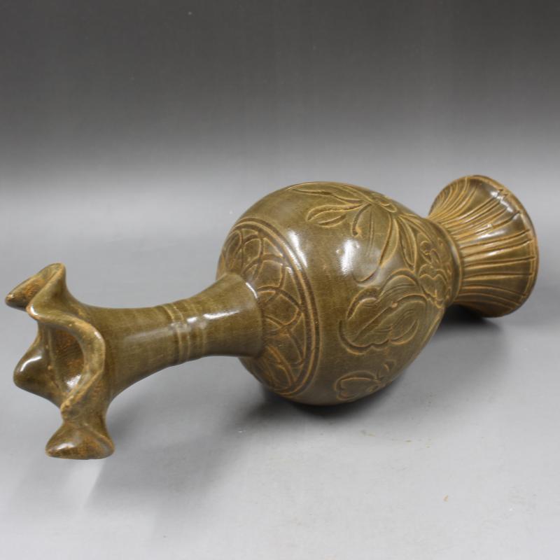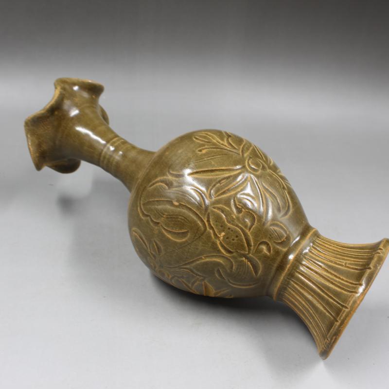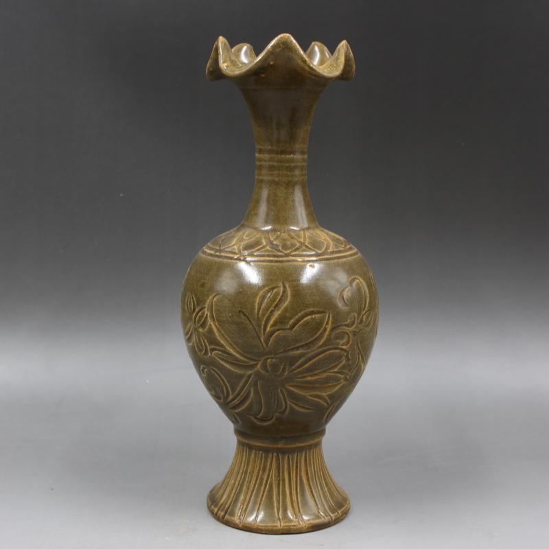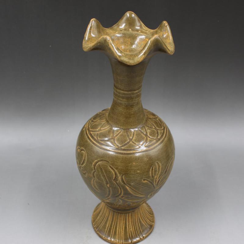 大周越窯刻花花口賞瓶手工仿古老貨瓷器家居擺件古董古玩老貨收藏1入