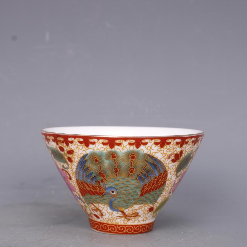 清乾隆琺瑯彩拉絲鳳紋斗笠茶杯仿古工藝茶具瓷器擺件古董古玩收藏1入