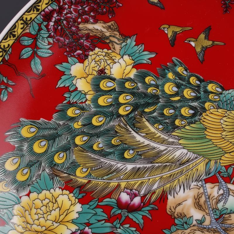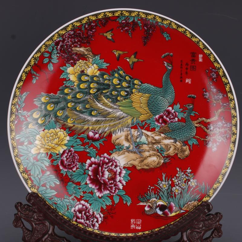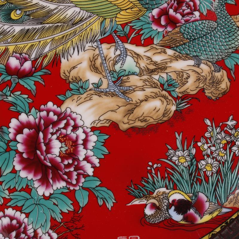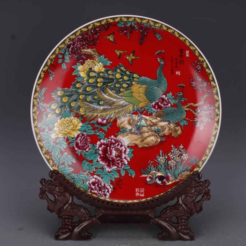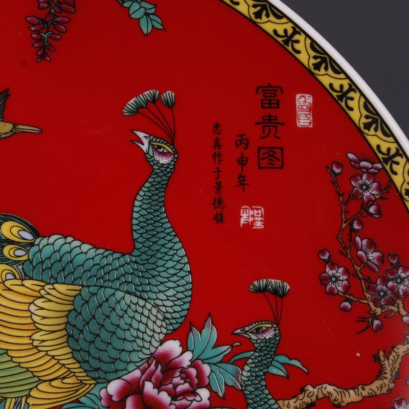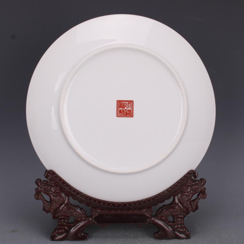 清乾隆款粉彩富貴花鳥紋平盤仿古工藝品瓷器家居擺件古董古玩收藏1入
