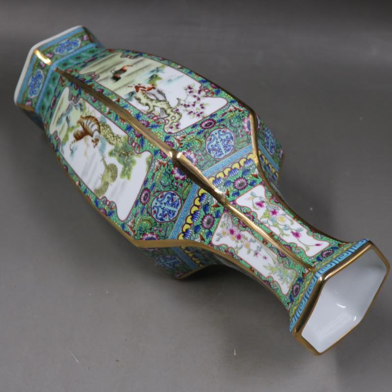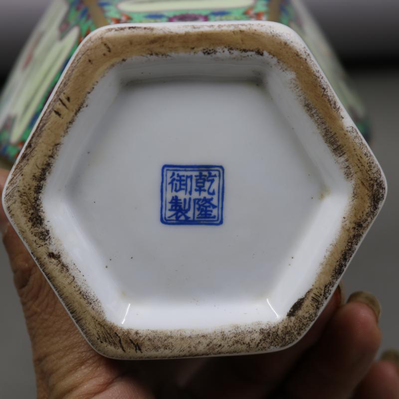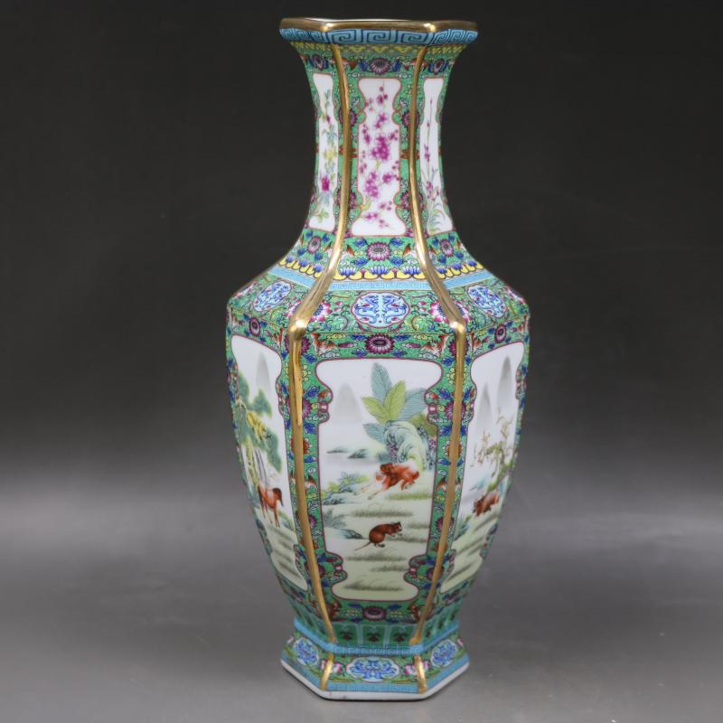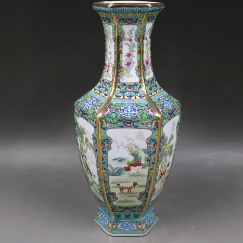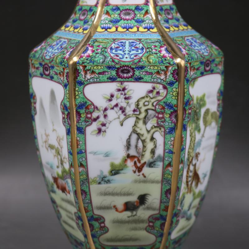 清乾隆琺瑯彩飄花十二生肖六方賞瓶家居擺件仿古瓷器收藏古董古玩1入