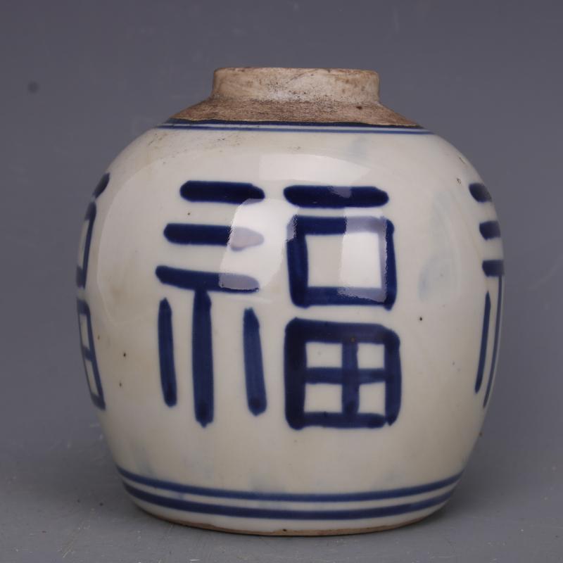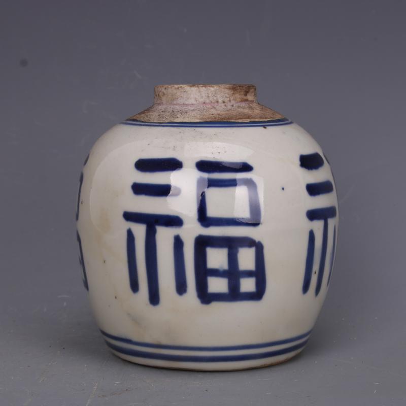 清光緒青花福字紋罐仿古老貨瓷器家居中式老貨擺件古董古玩收藏1入