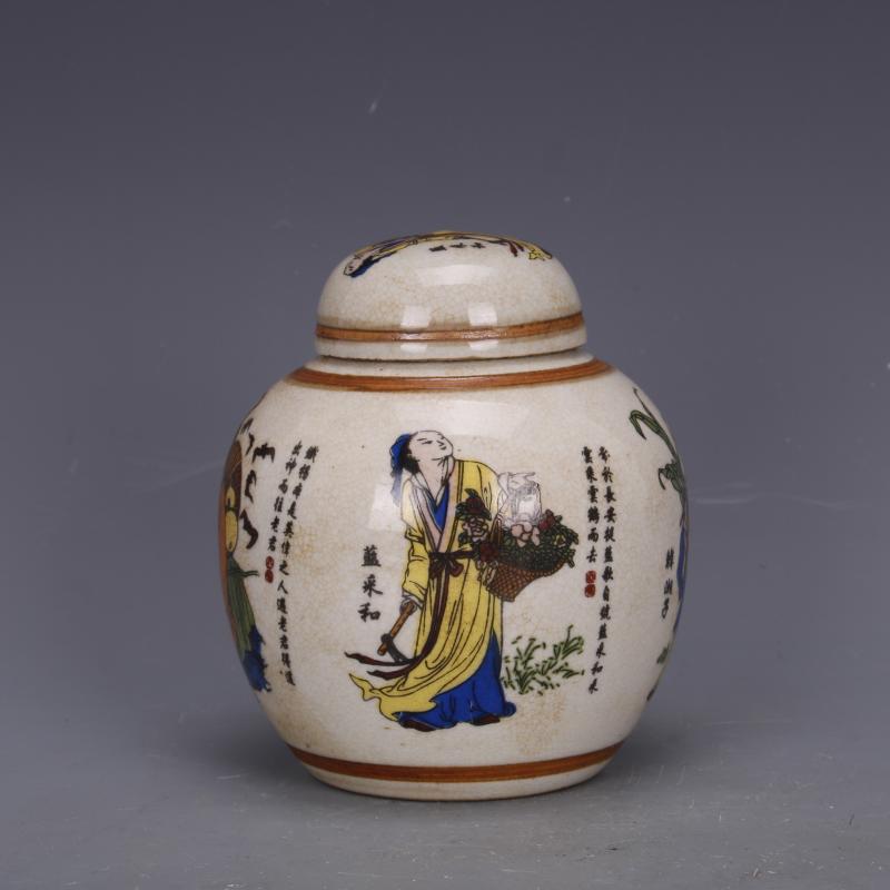 清乾隆粉彩八仙人物茶葉罐仿古老貨瓷器家居中式擺件古董古玩收藏1入