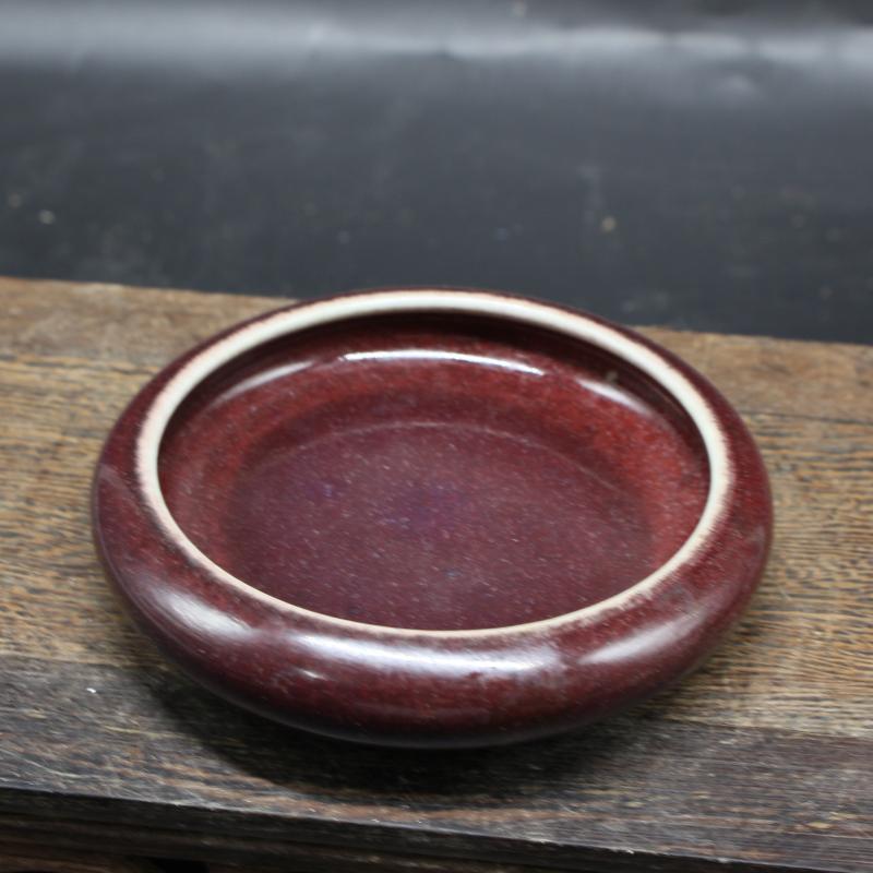 清中期全手工祭紅筆洗 文房用品 老貨包老 仿古瓷器擺件 古董古玩1入