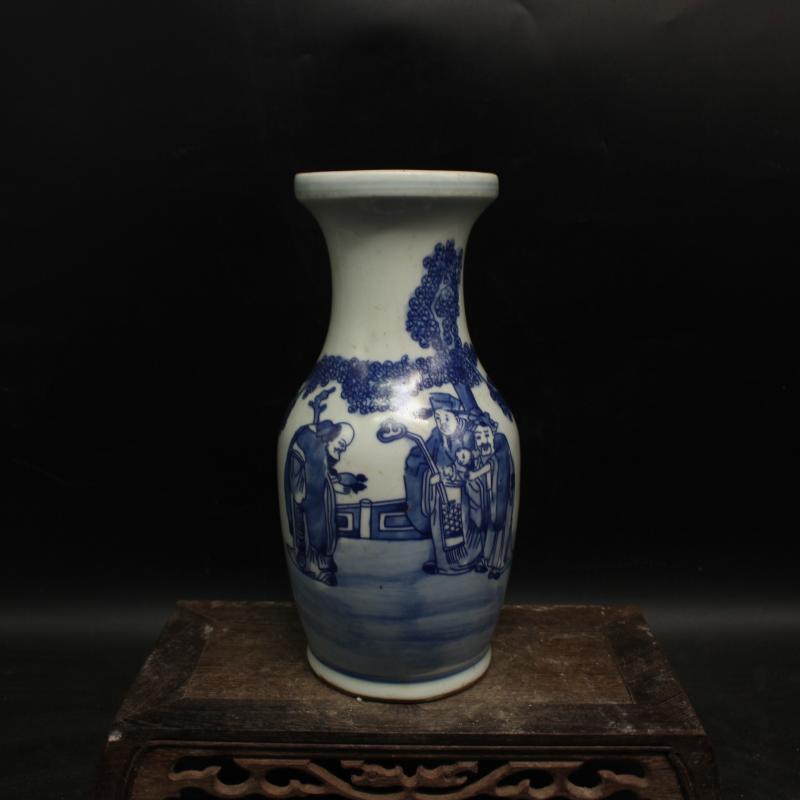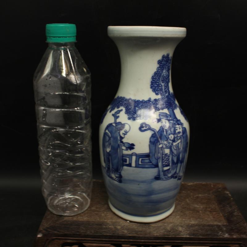 清中期全手工青花人物故事花瓶 景德鎮老貨仿古瓷器擺件 古董古玩1入
