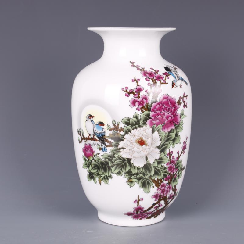清乾隆粉彩牡丹花鳥紋冬瓜瓶仿古中式家居餐廳瓷器擺件古董古玩1入