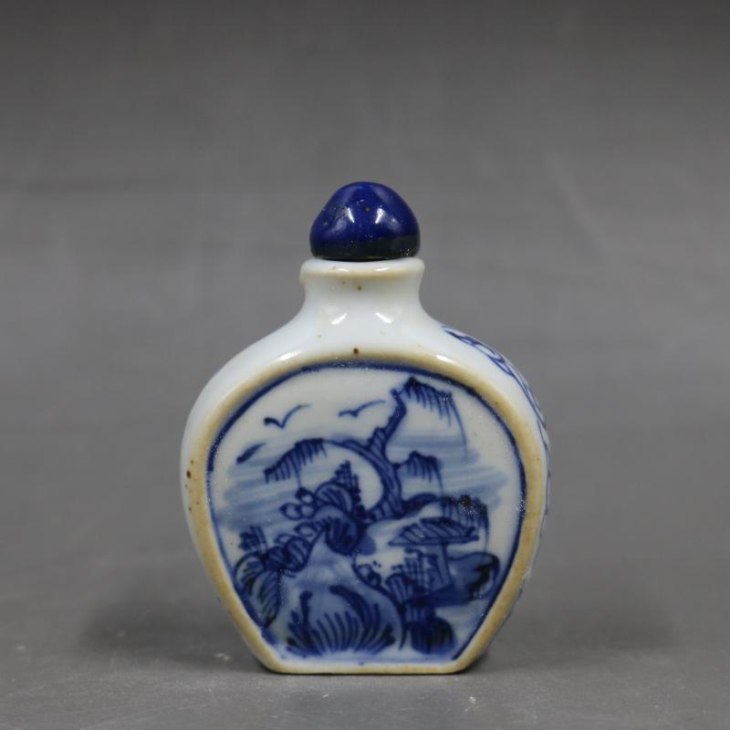 清光緒青花山水人物鼻煙壺仿古老貨瓷器家居裝飾博古古玩古董收藏1入