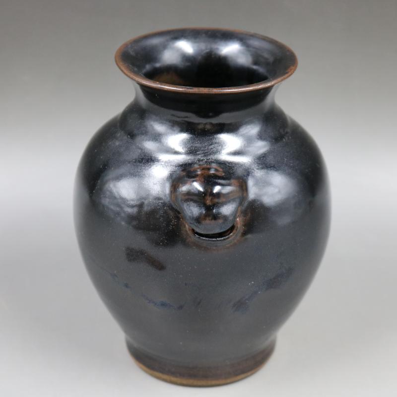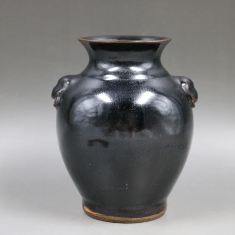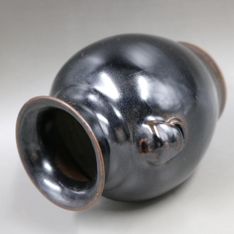 清乾隆烏金釉獸頭罐手工仿古老貨家居瓷器裝飾擺件古董古玩收藏1入