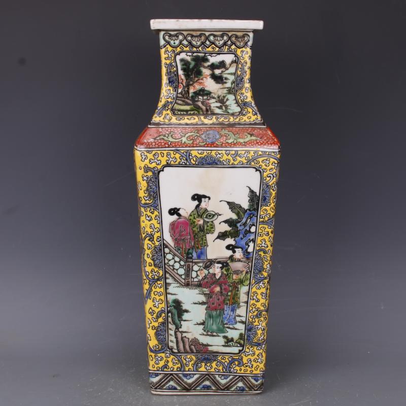 清康熙年制鑲器五彩人物四方花瓶仿古家居復古瓷器擺件古董古玩1入