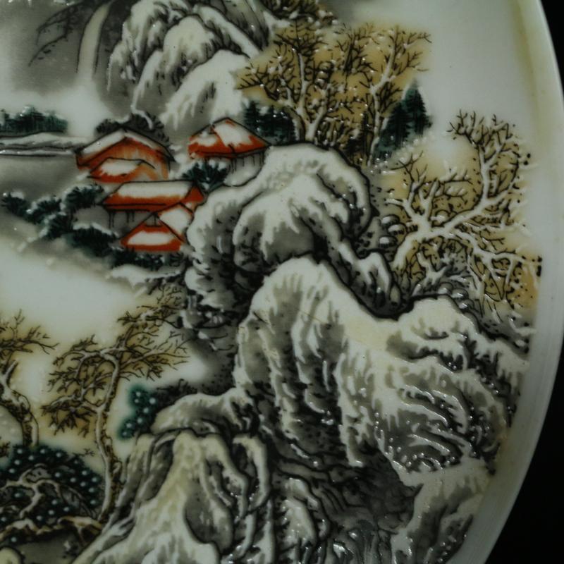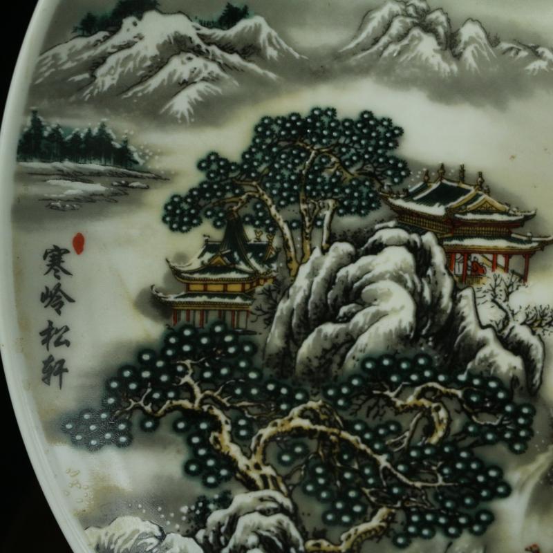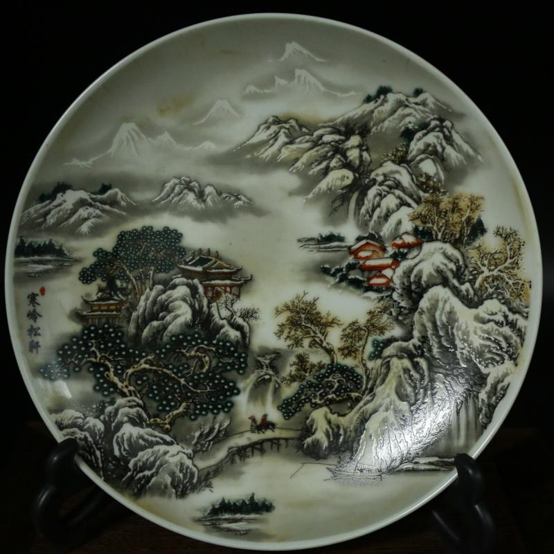 清 乾隆年制素三彩山水盤 仿古瓷器 古董古玩 家居擺件精品1入