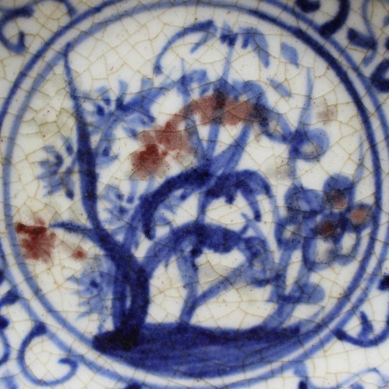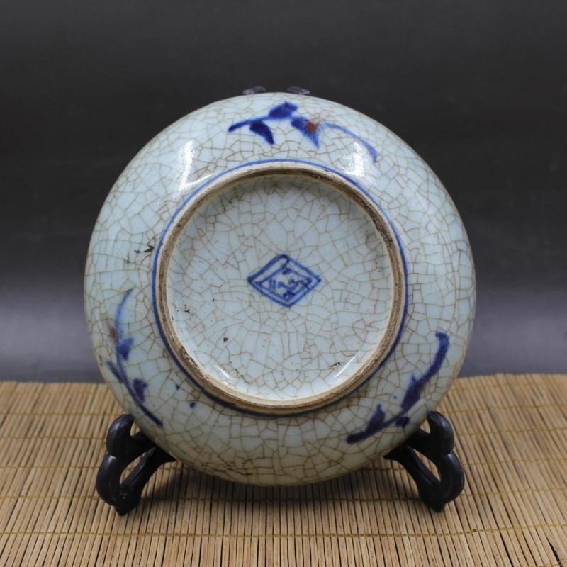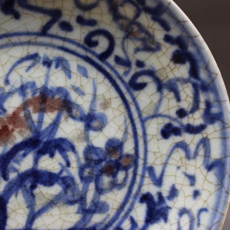 元青花釉里紅松竹梅紋盤 老貨仿古瓷器收藏 古董古玩擺件手工手繪1入