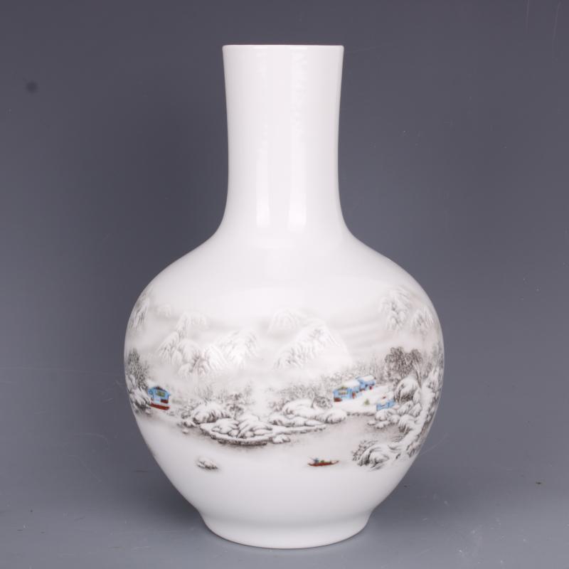 清乾隆薄胎粉彩雪景天球瓶仿古工藝貼花瓷器家居裝飾中式古玩擺件1入