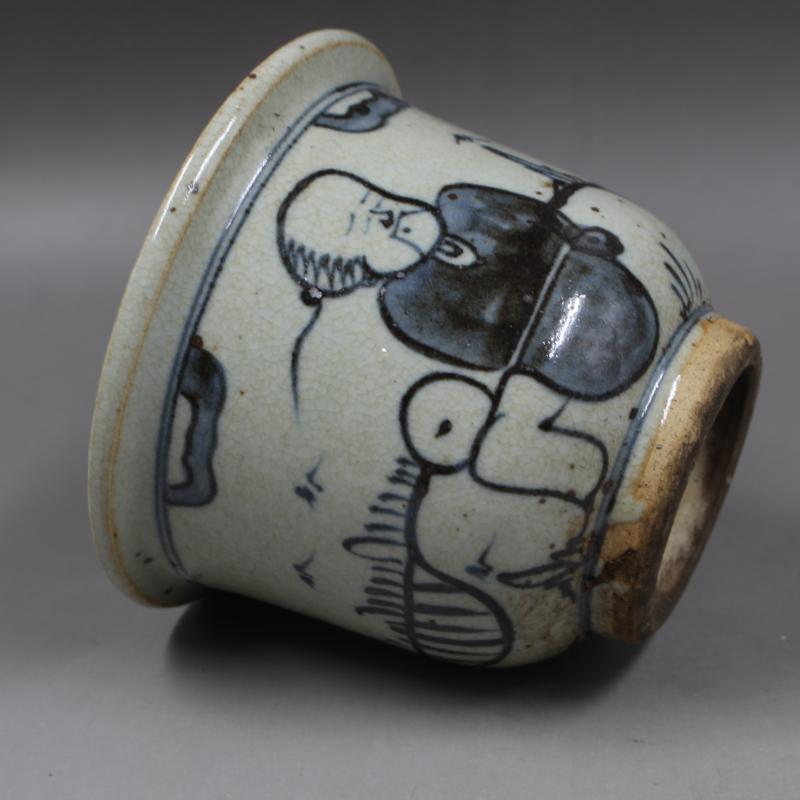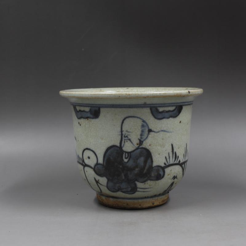 元青花人物多肉植物小花盆手繪仿古老貨瓷器家居擺件古董古玩收藏1入