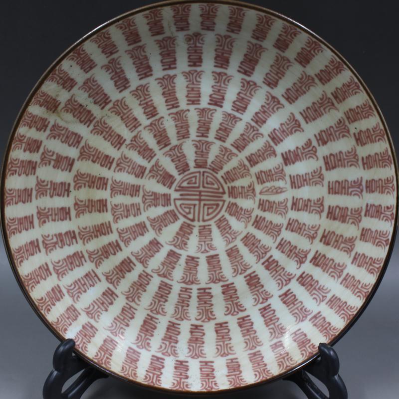 大清康熙年制釉里紅百壽紋盤全手工仿古老貨瓷器家居擺件古玩收藏1入