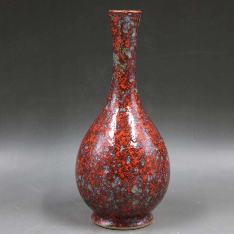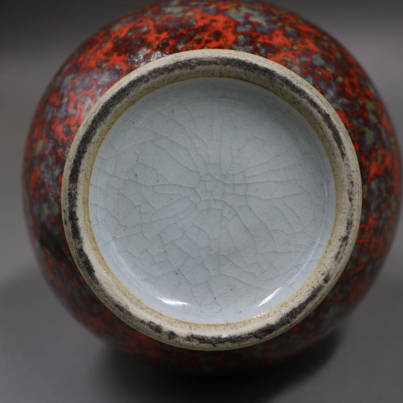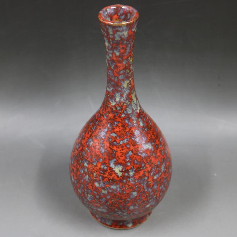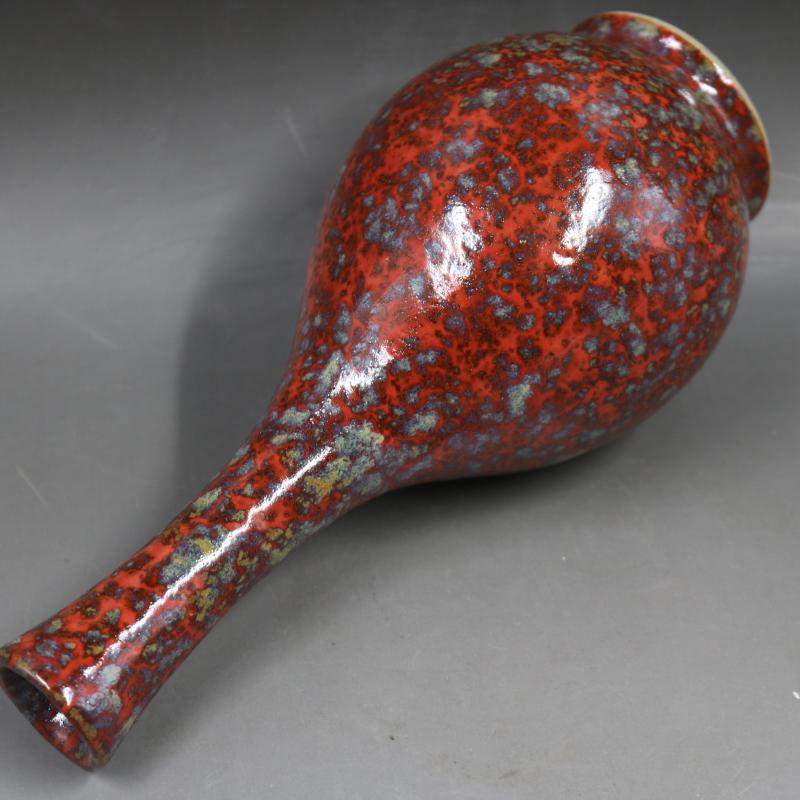 清窯變紅花釉膽瓶花插瓶老貨民間收藏品家居擺件仿古瓷器古董古玩1入