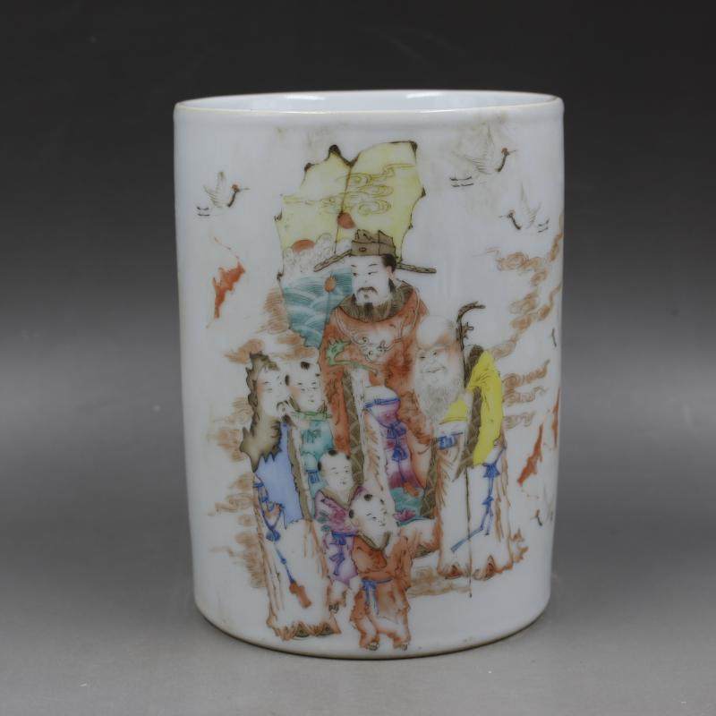 民國洪憲款粉彩人物三星筆筒仿古文房用品擺件瓷器古董古玩老貨1入