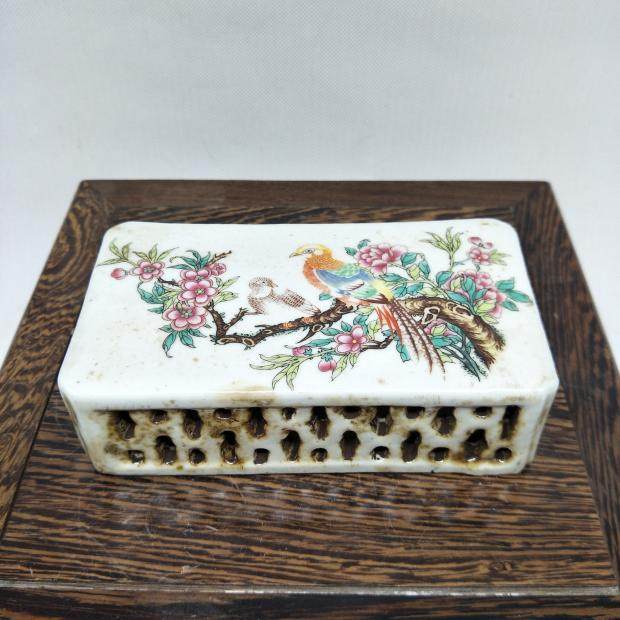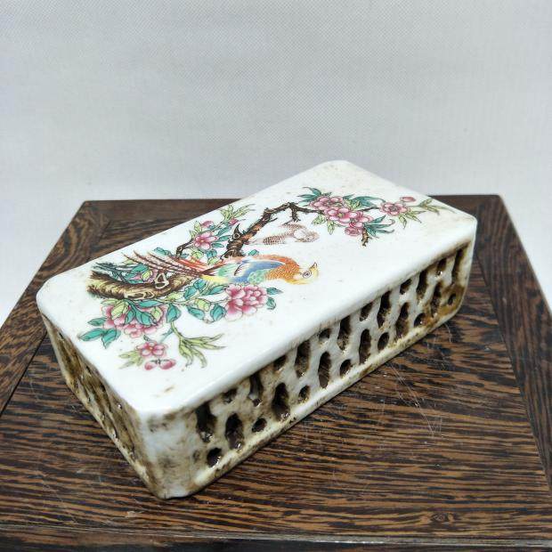 民國粉彩花鳥鏤空鎮紙 民間收藏品 家居擺件瓷器 古董古玩1入