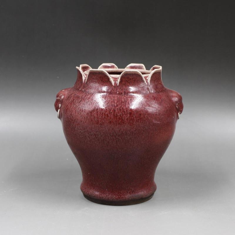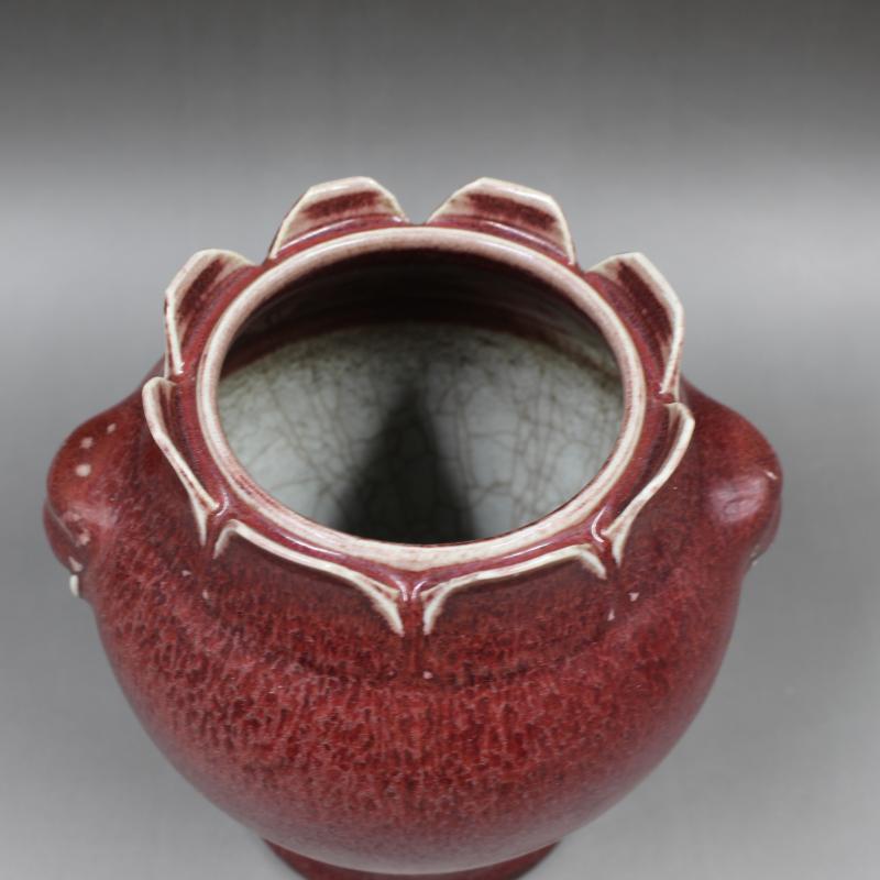 清雍正窯變紅釉花口罐 全手工仿古出土瓷器 家居擺件古董古玩收藏1入