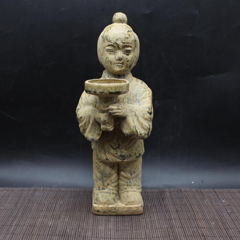 西晉越窯雕刻童女燭臺油燈 全手工精品仿古出土瓷器擺件 古董古玩1入