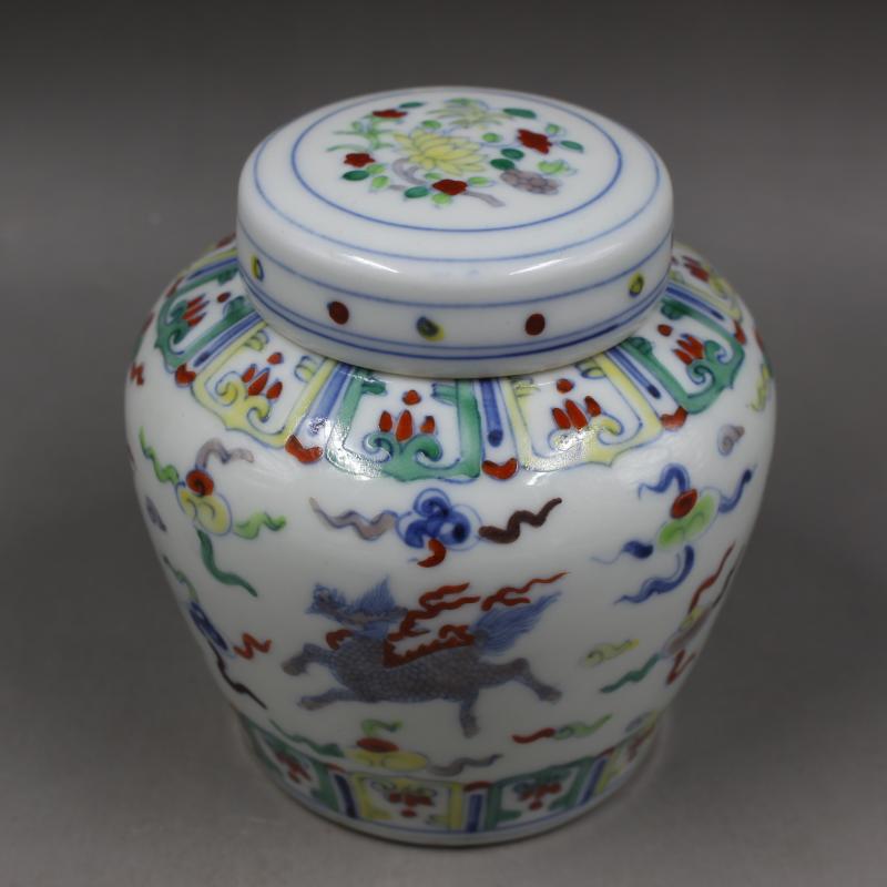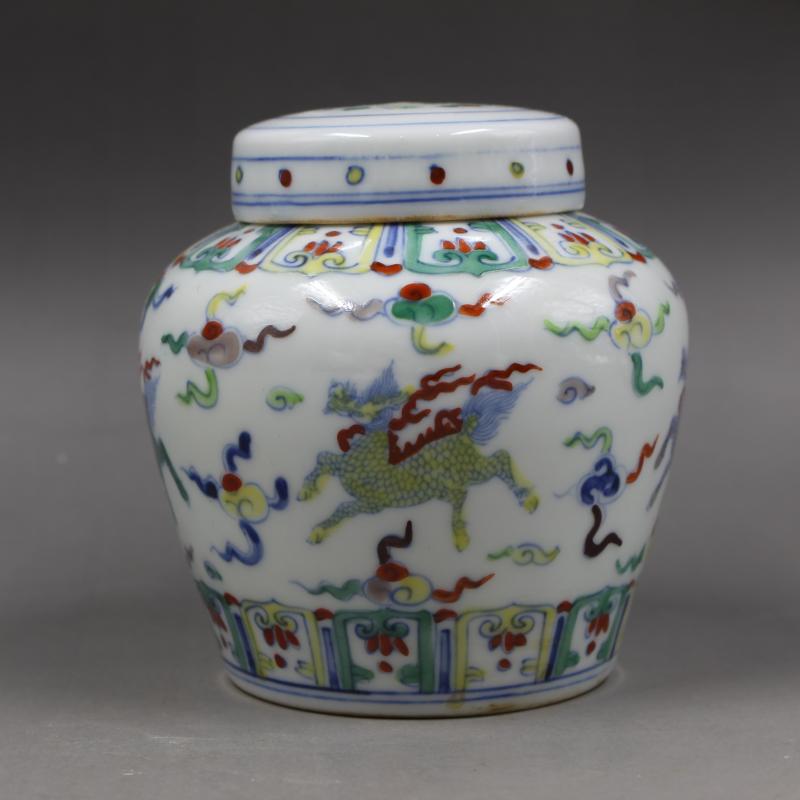 大明成化年制青花斗彩麒麟紋天子罐仿古老貨瓷器家居擺件古董古玩1入