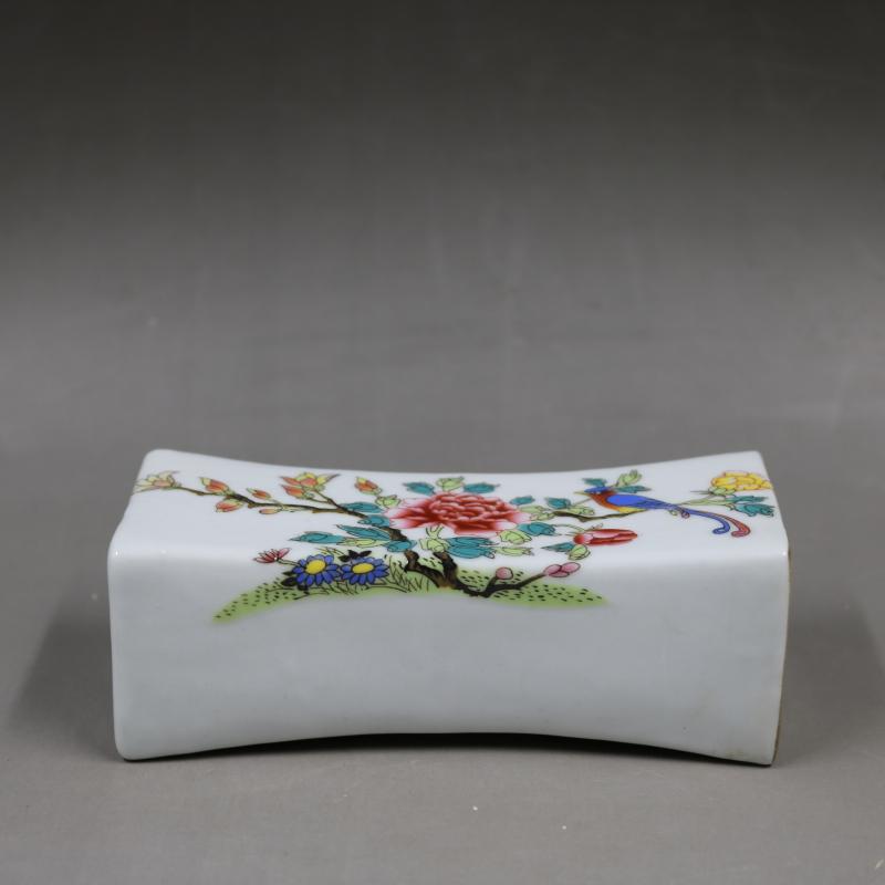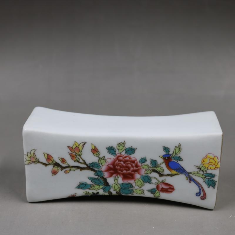 清光緒粉彩牡丹花鳥手枕脈枕古醫館用品擺件瓷器老貨古董古玩收藏1入
