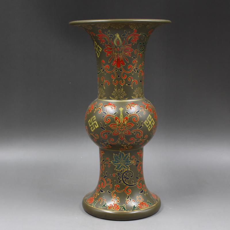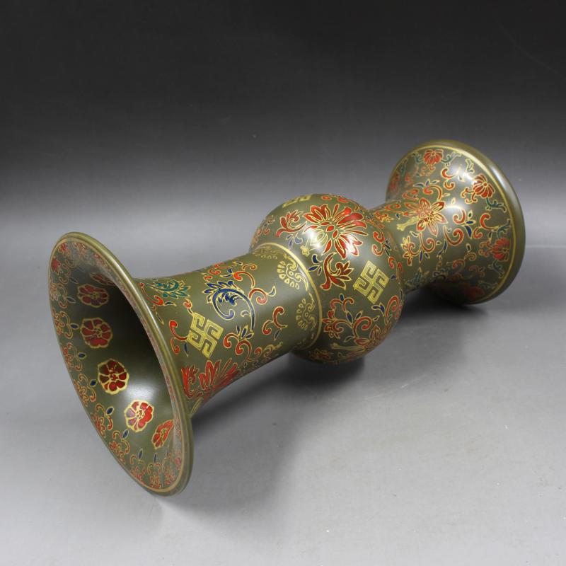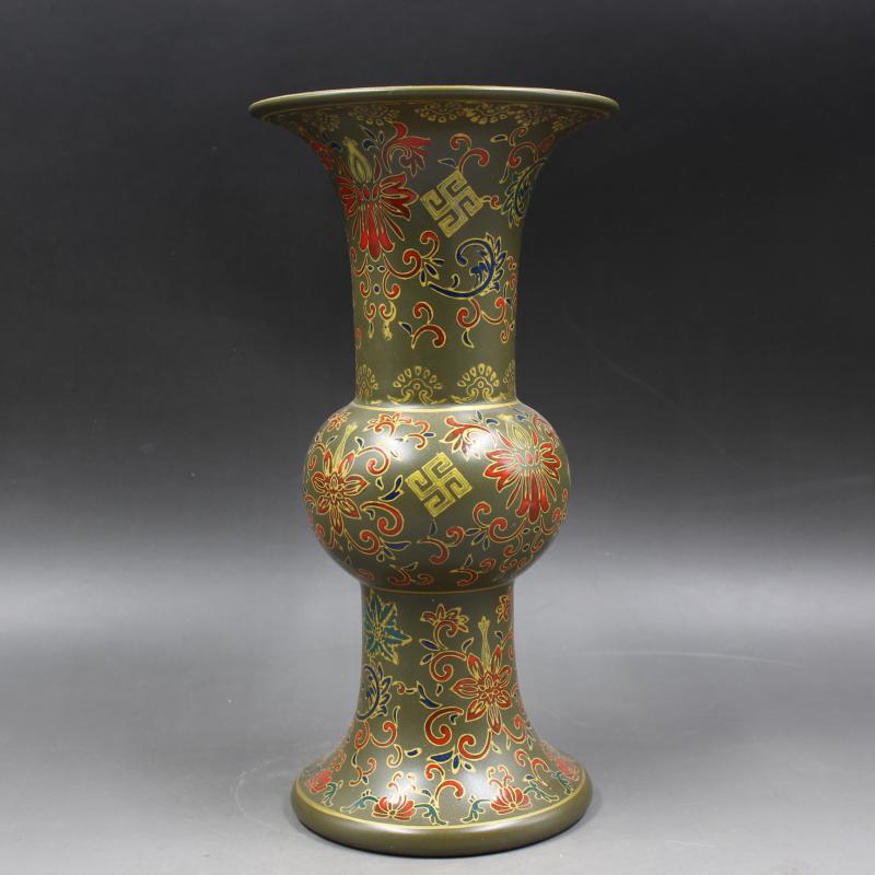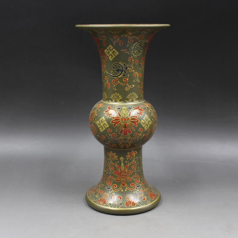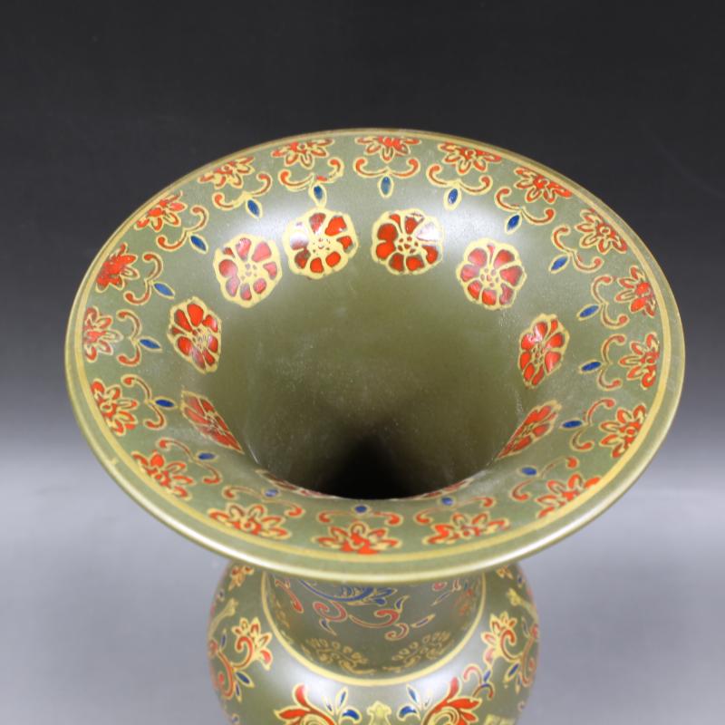 清雍正年制茶葉沫地琺瑯彩花觚瓶 家居仿古瓷器擺件 古董古玩收藏1入