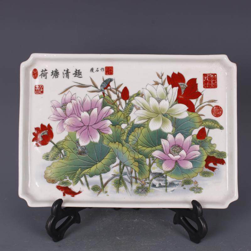 民國江西瓷業公司粉彩花鳥盤仿古貼花工藝品家居擺件瓷器古玩收藏1入