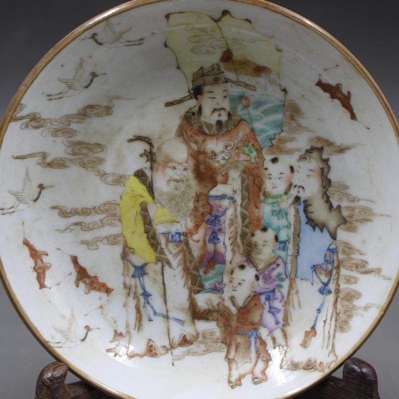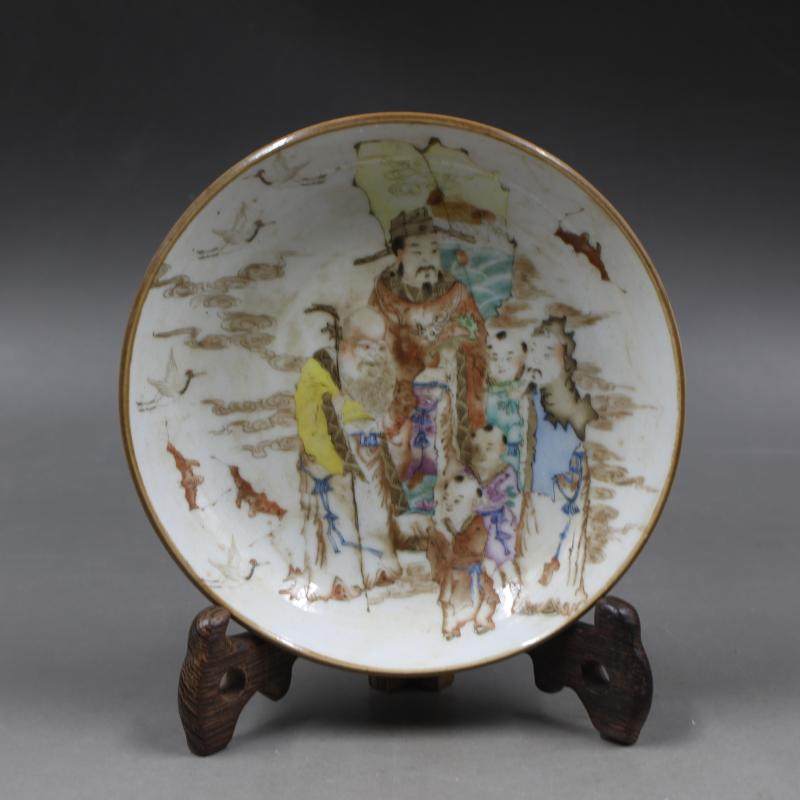 民國江西瓷業公司款三星人物小碟盤仿古瓷器家居擺件古董古玩收藏1入