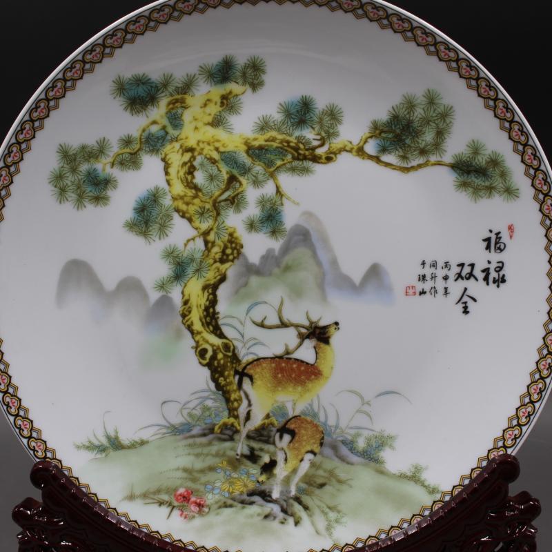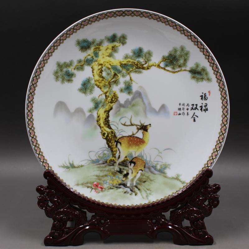 清乾隆粉彩福祿雙全盤 仿古瓷器 家居復古裝飾擺件 古董古玩收藏1入