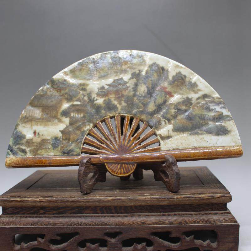 民國粉彩山水紋扇子 仿古董古玩老貨舊貨收藏擺件廠貨老貨1入