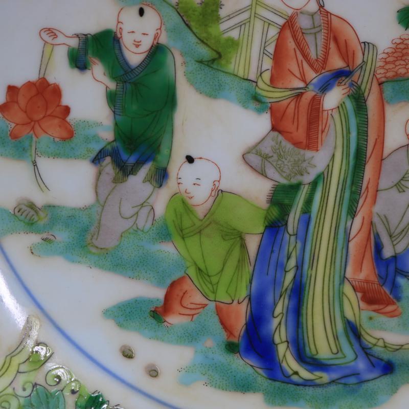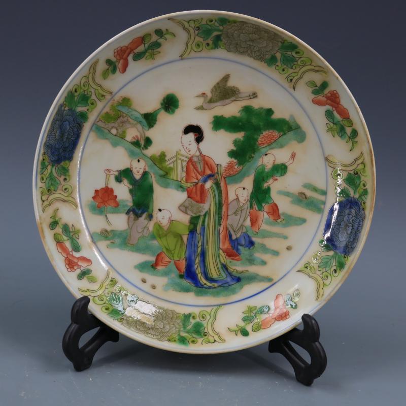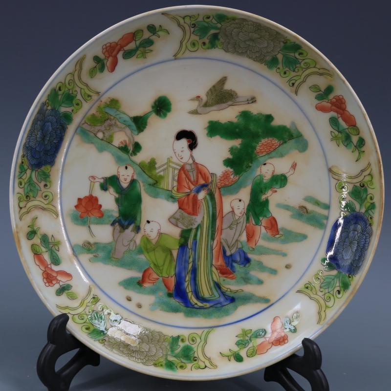 [2]清康熙古彩人物故事盤手工仿古老貨瓷器家居博古裝飾擺件古董古玩1入