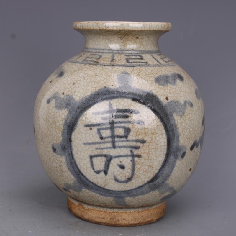 清光緒青花壽字紋罐手繪仿古老貨瓷器家居老貨擺件古董古玩收藏1入