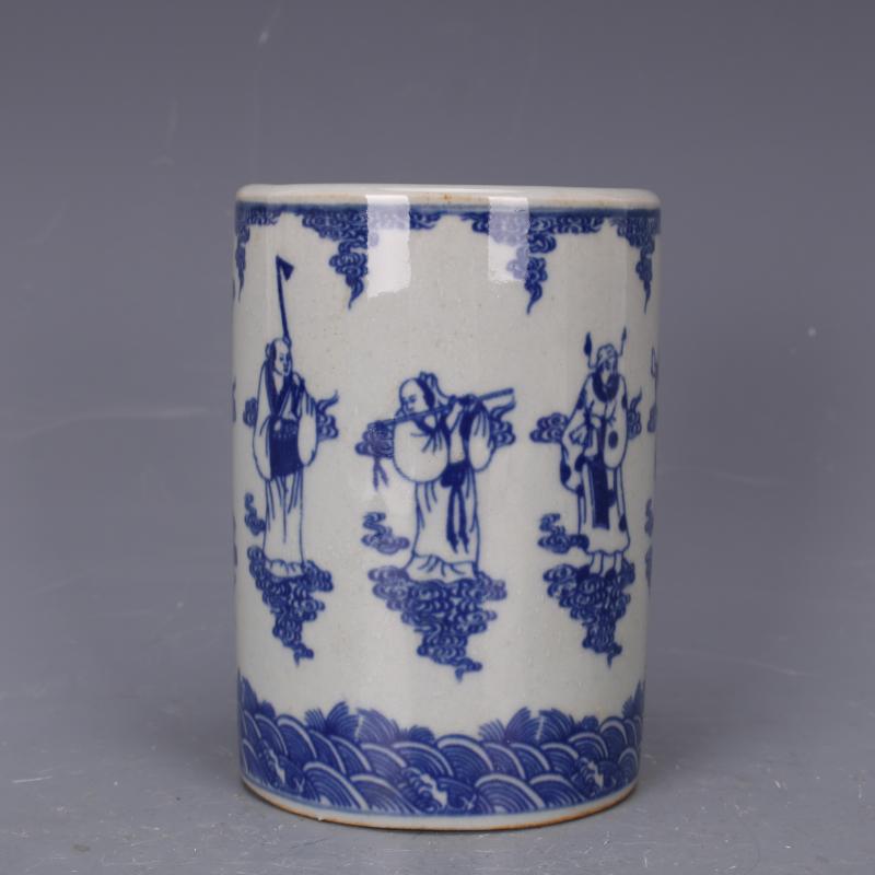 清雍正青花八仙人物筆筒仿古老貨瓷器家居中式文房擺件古董古玩1入
