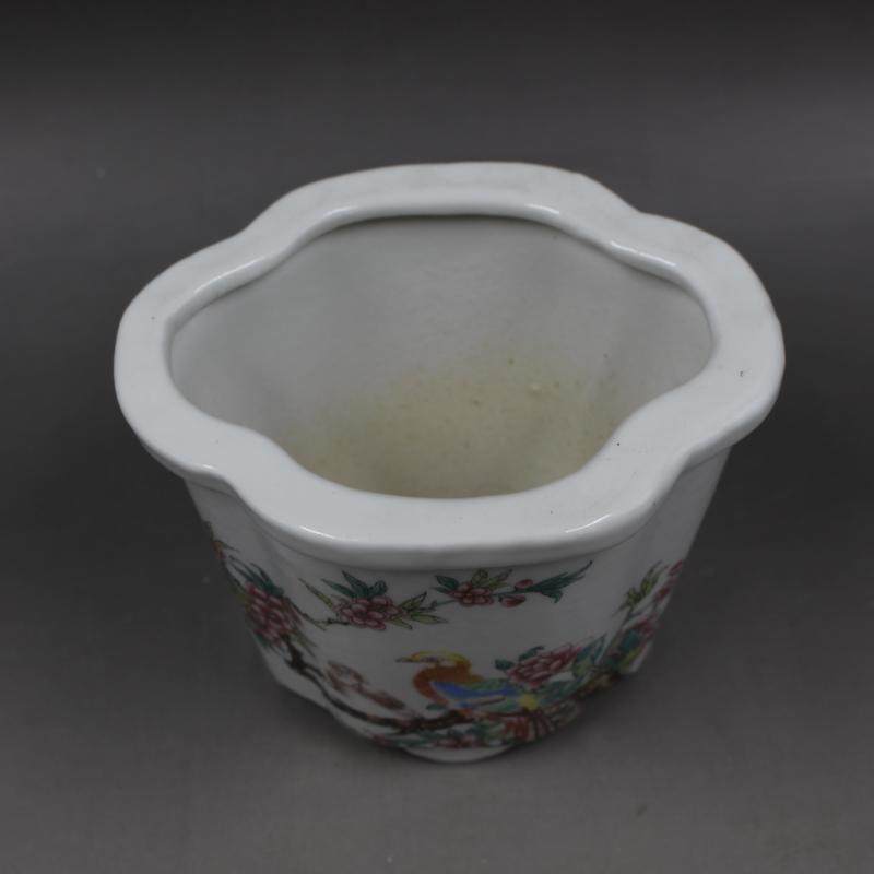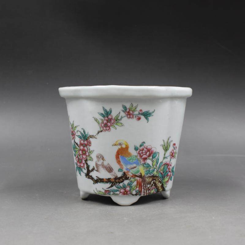 民國粉彩山水多肉蘭花菖蒲花盆古董老陶瓷舊貨古玩瓷器老貨擺1入