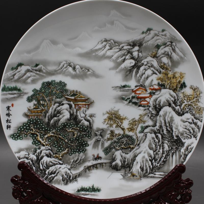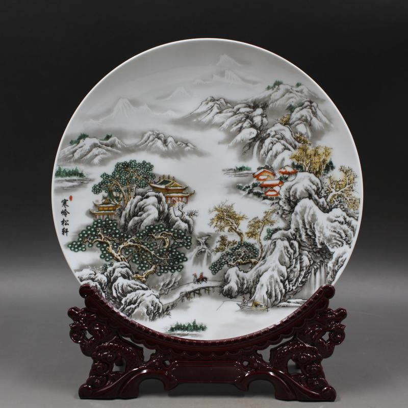 清乾隆雪景山水盤 仿古瓷器 家居復古裝飾擺件 觀賞古董古玩收藏1入