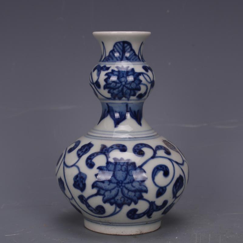 青乾隆青花纏枝蓮紋葫蘆瓶民間老貨收藏家居瓷器擺件古董古玩收藏1入