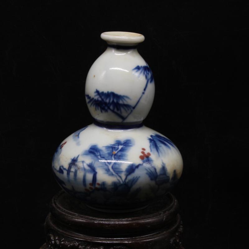 清青花山水小葫蘆瓶 仿古瓷器 古董古玩家居擺件 民間收藏品老貨1入