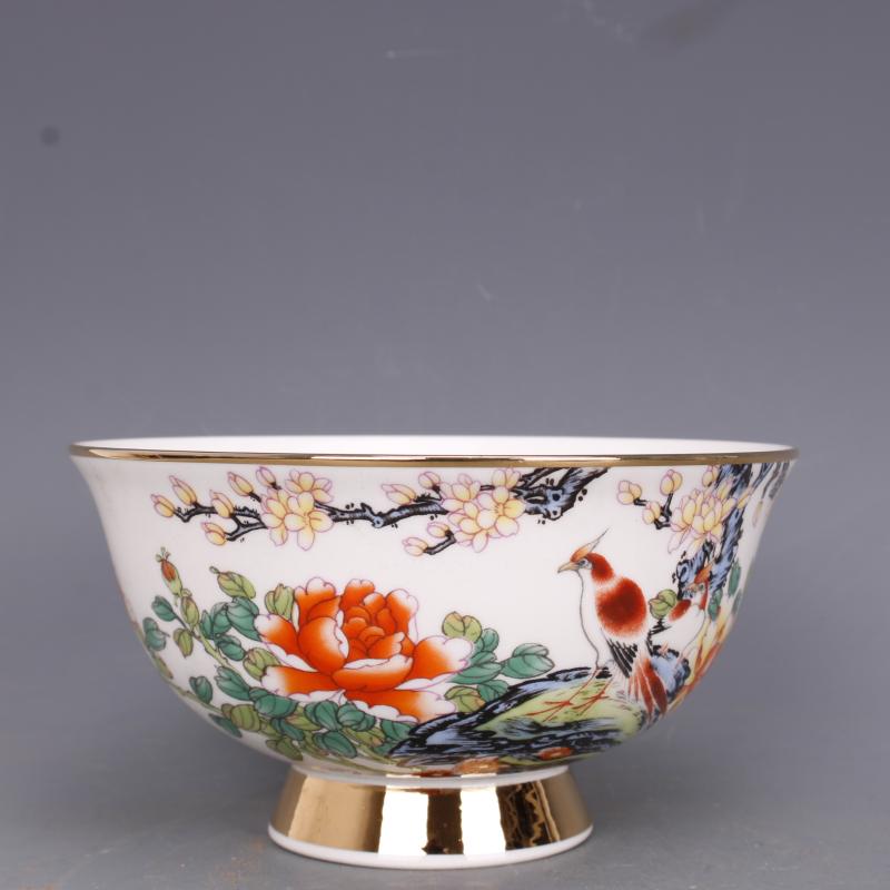 清乾隆粉彩牡丹花鳥紋碗民間收藏品家居中式擺件仿古瓷器古董古玩1入