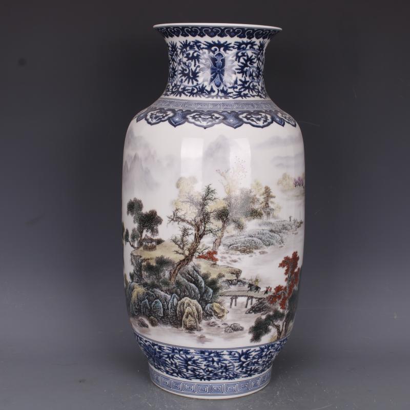 清乾隆青花斗彩山水紋冬瓜瓶仿古家居中式瓷器擺件古董古玩收藏1入