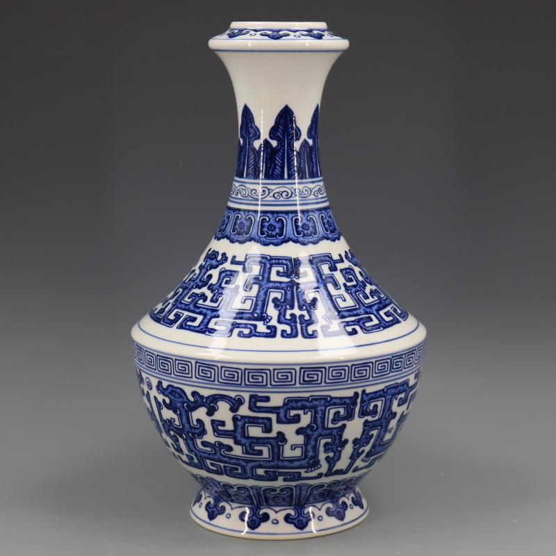 清乾隆青花中華紋方尖瓶仿古工藝瓷器家居博古擺件古董古玩收藏1入