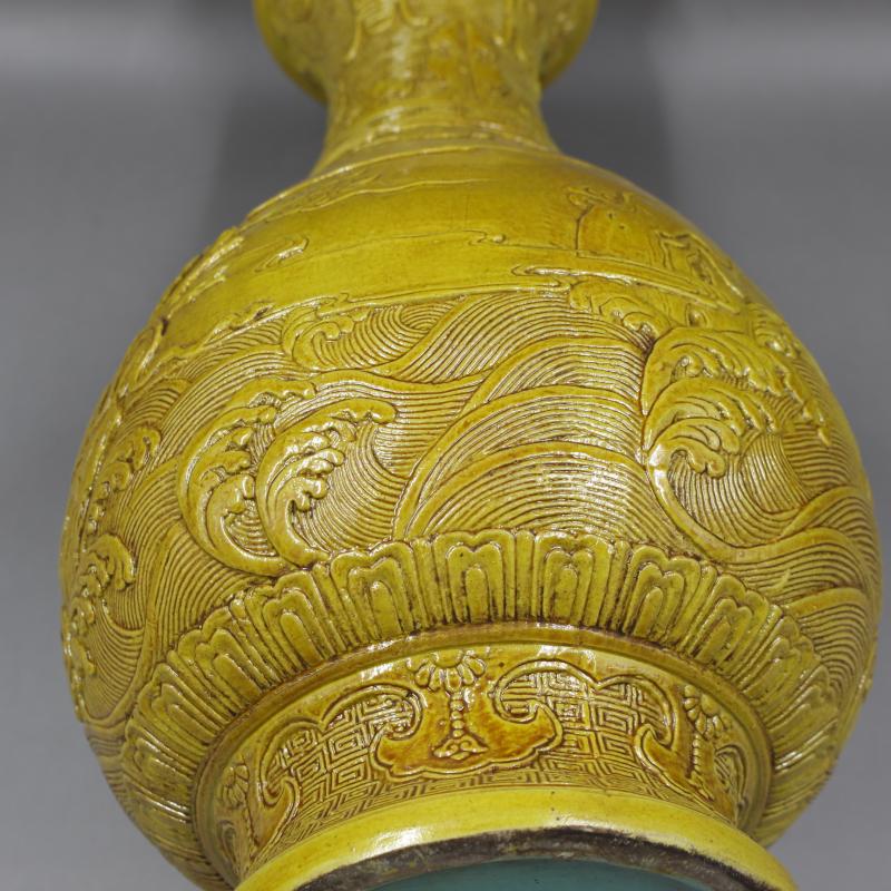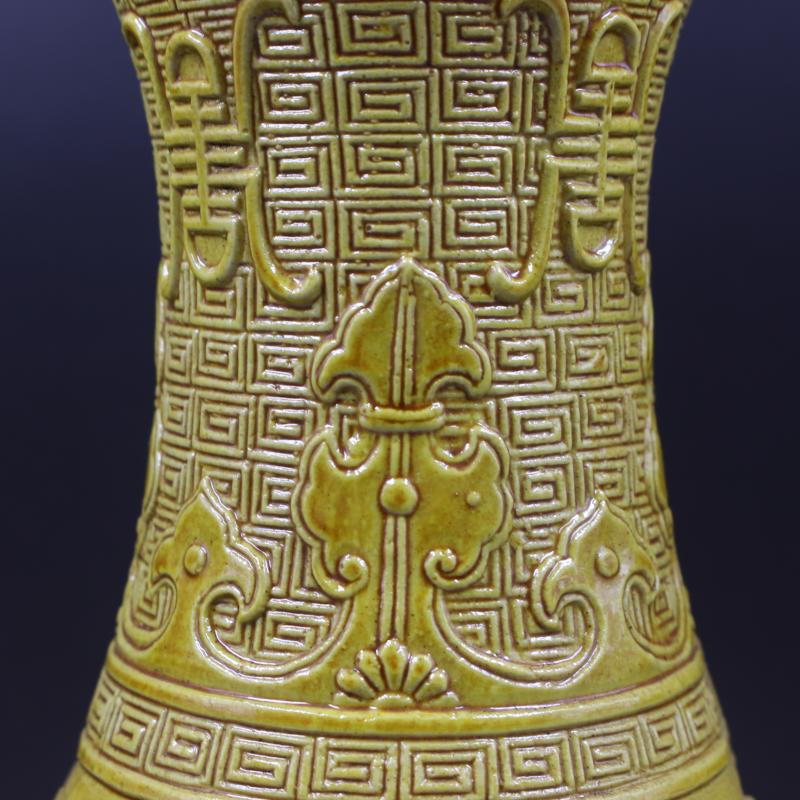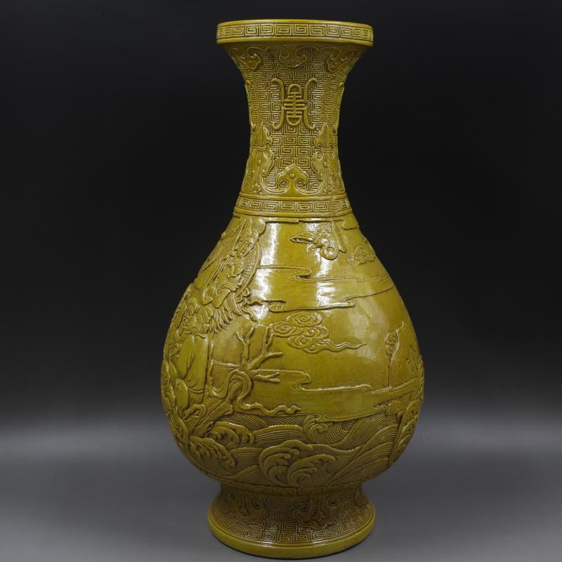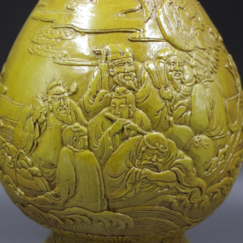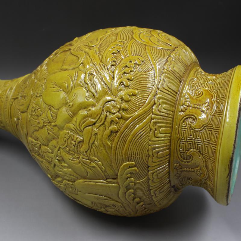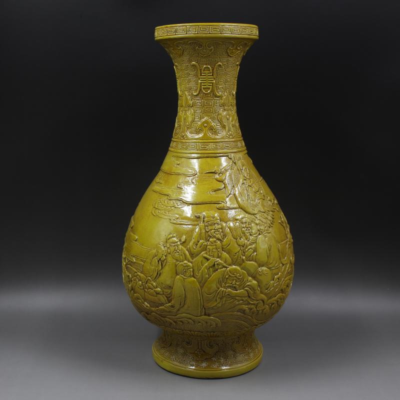 大清乾隆年制黃釉浮雕八仙人物玉壺春瓶仿古瓷器家居擺件古董古玩1入