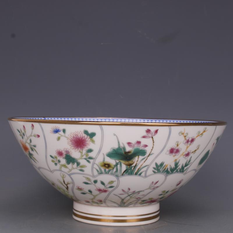 清乾隆粉彩荷花花紋面碗7寸仿古工藝瓷器家居中式擺件古玩老收藏1入