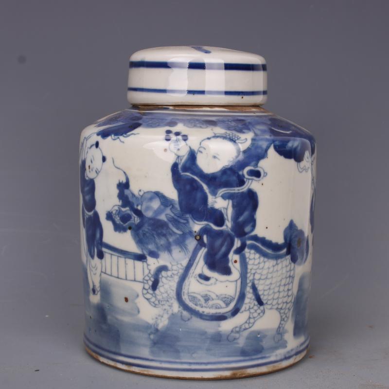 清光緒青花人物茶葉罐仿古老貨瓷器家居中式擺件古董古玩博古收藏1入