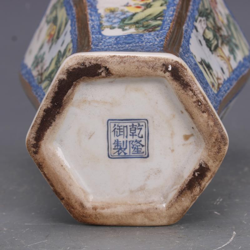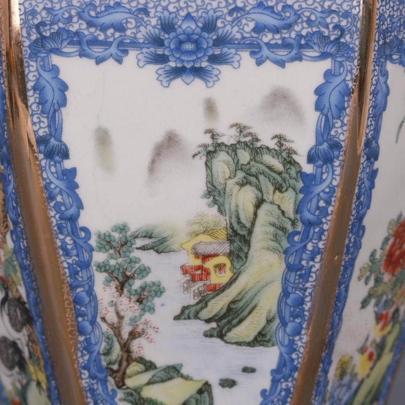 [2]清乾隆描金琺瑯彩山水花鳥六方梅瓶仿古瓷器中式家居擺件古玩收藏1入