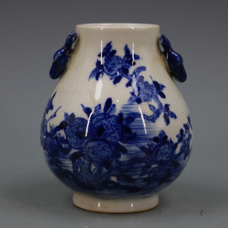 清乾隆青花壽桃紋鹿頭尊福筒仿古工藝瓷器古董古玩家居擺件收藏1入