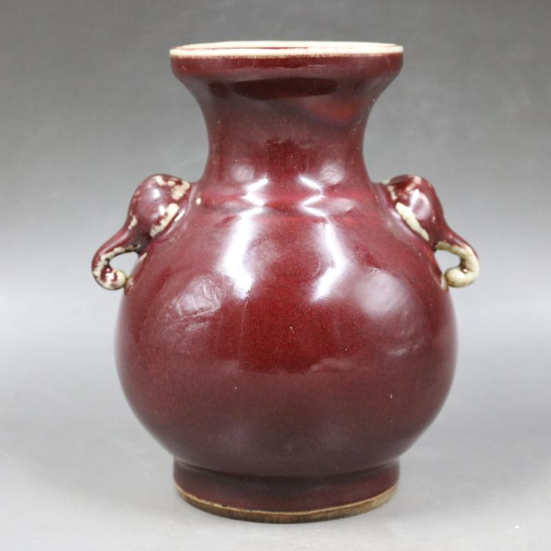 清乾隆年制祭紅釉象耳尊古董古玩仿古瓷器全手工高仿復古老貨擺件1入