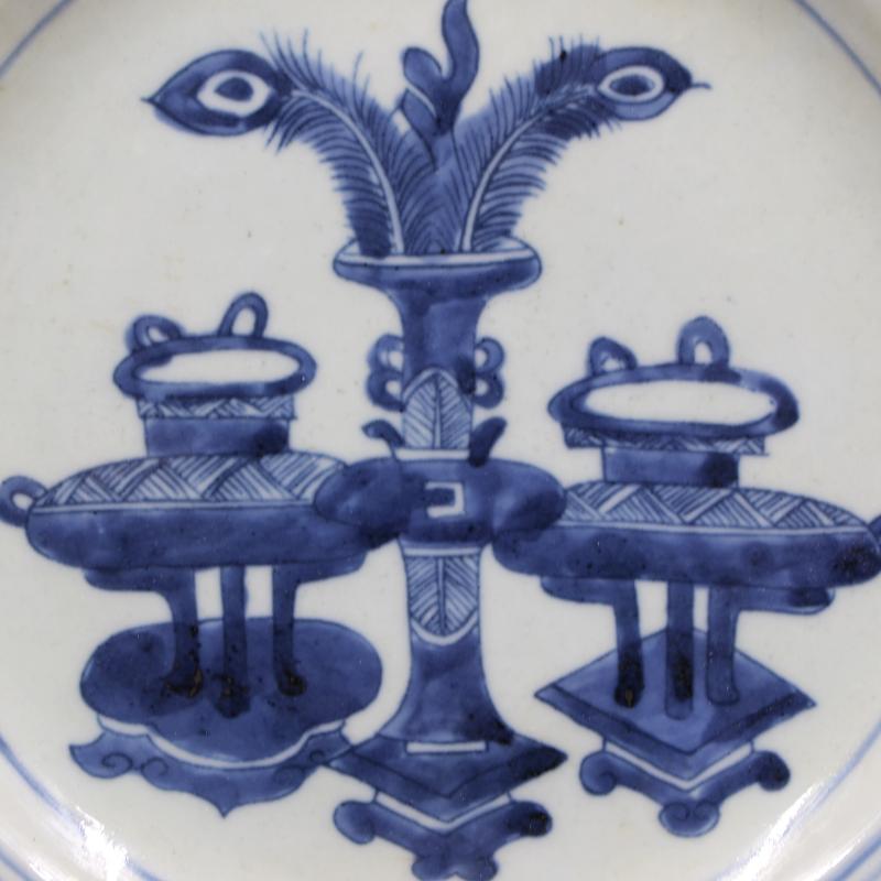 清康熙年制青花博古紋盤 手工仿古老貨瓷器 家居擺件古董古玩收藏1入