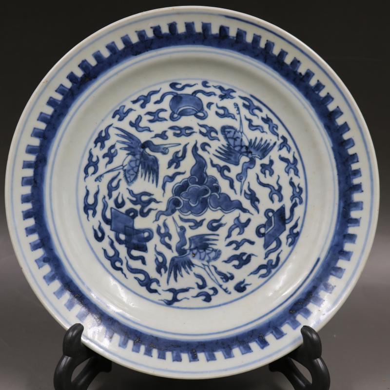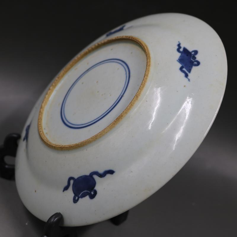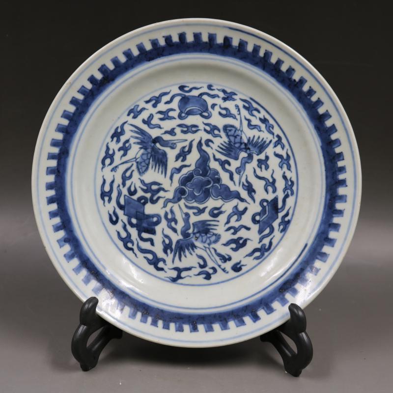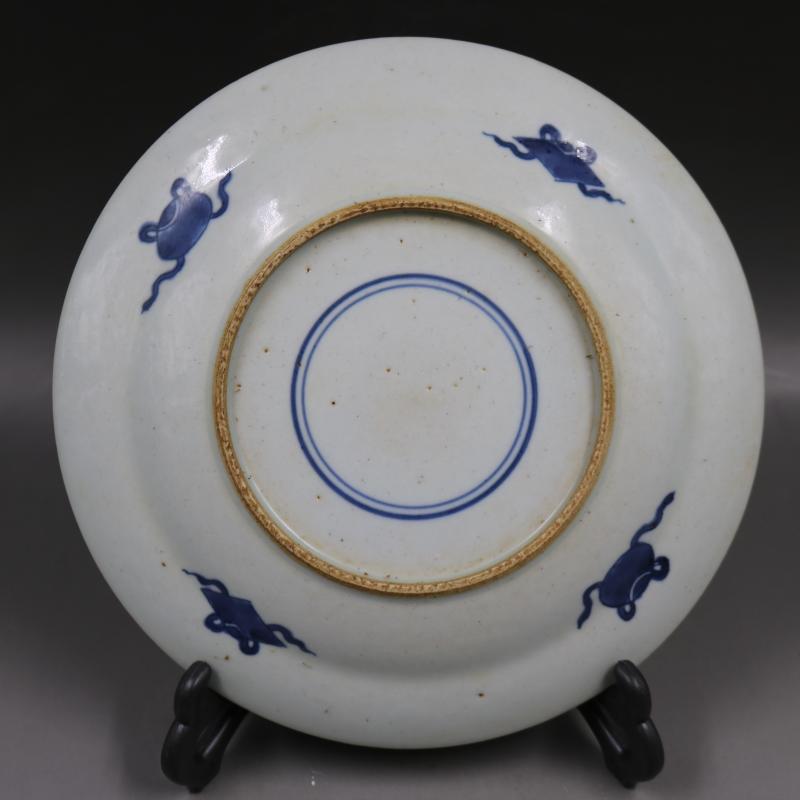 清中期全手工手繪青花賀壽盤碟老胎老貨瓷器家居擺件古董古玩收藏1入