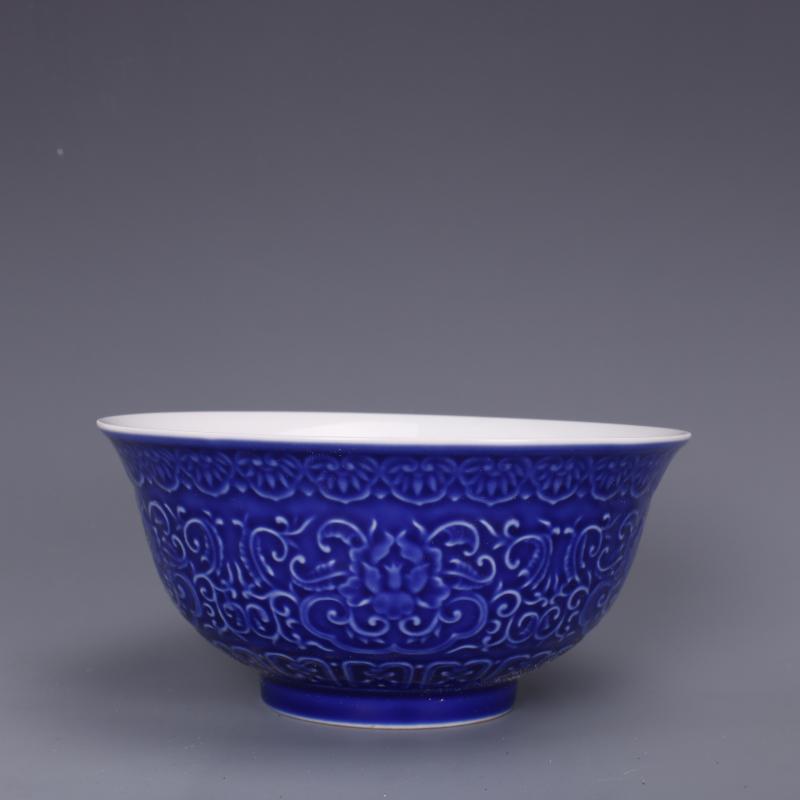 六十年代祭藍刻花紋碗仿古景德鎮瓷器中式家居擺件古董古玩收藏1入