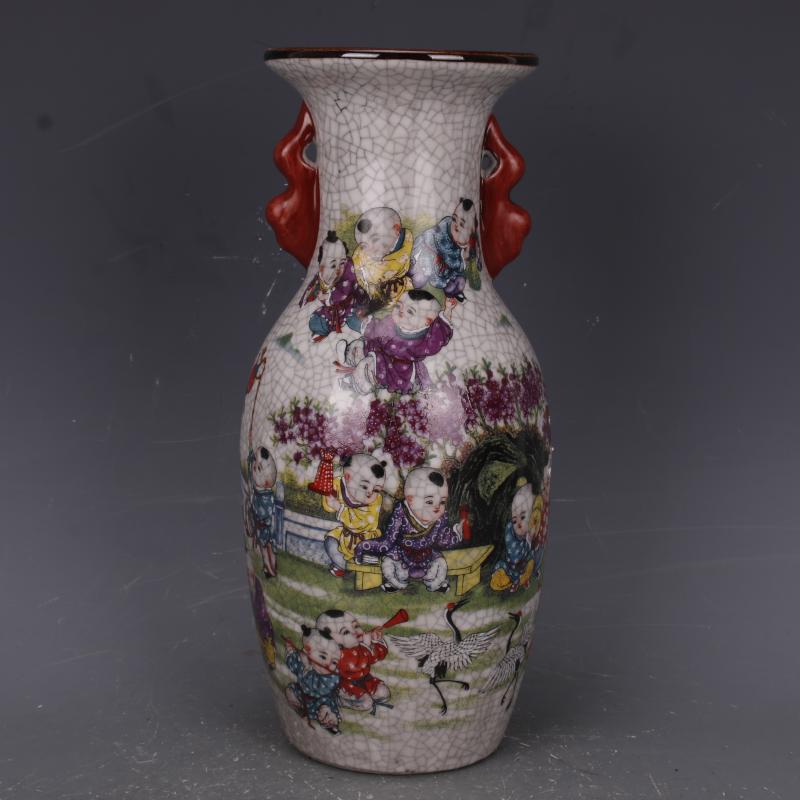 清乾隆粉彩嬰戲紋賞瓶仿古老貨瓷器家居中式擺件古董古玩老貨收藏1入