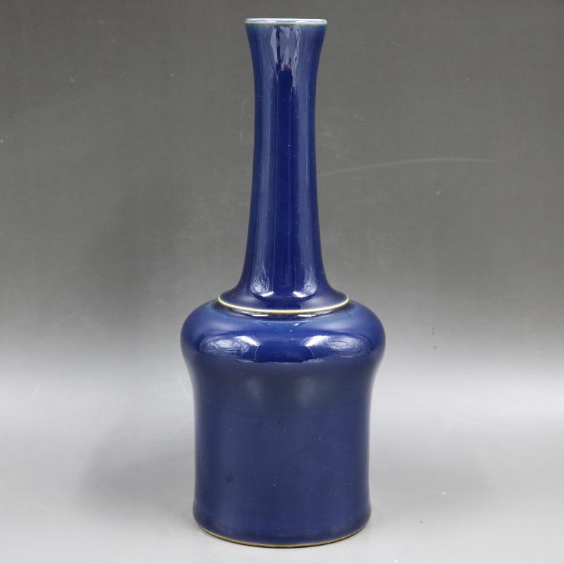 清康熙祭藍釉搖鈴尊瓶仿古家居復古裝飾瓷器擺件古董古玩老貨收藏1入